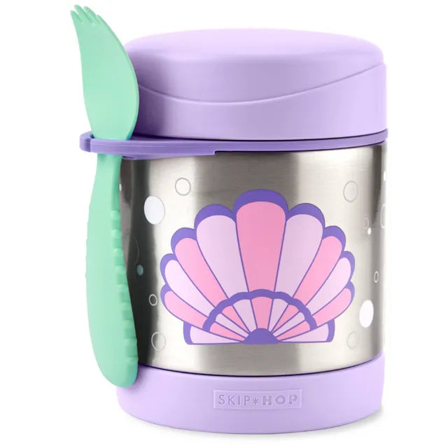 Pack their meals with epic style! Featuring cool designs that let little personalities shine, this stainless steel food container keeps kid-sized portions warm or cold for on-the-go munching. Included a matching spork with a built-in holder (how handy is that?).