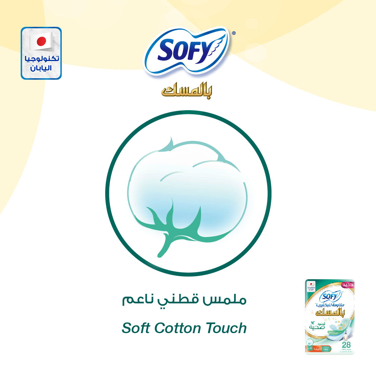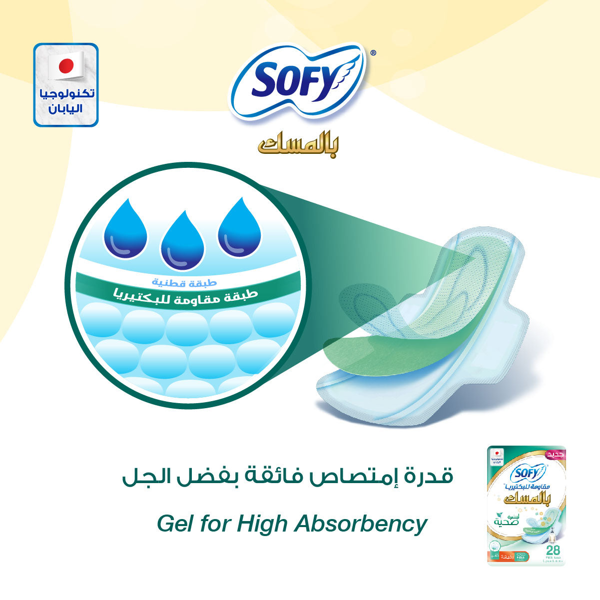 For the first time in the middle east a new pad from Sofy with an anti-bacterial sheet, so that you can enjoy a perfect feeling of hygiene and healthy skin