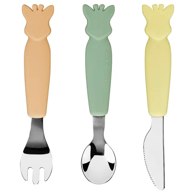 A set of 3 cutlery in ionx and silicone, for baby's first meals in autonomy!