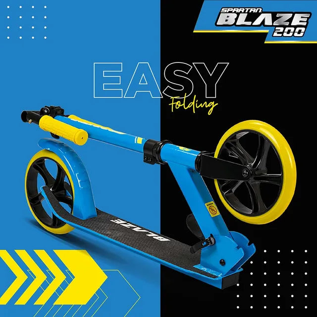 The Spartan Folding Kick Scooter with 200mm wheels delivers a cool and fun look as you roll smoothly around the neighbourhood or the park. The lightweight design makes it easy to handle and move from one point to another with better balance.