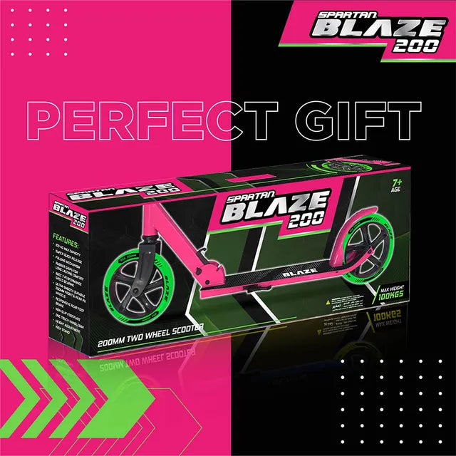The Spartan Folding Kick Scooter with 200mm wheels delivers a cool and fun look as you roll smoothly around the neighbourhood or the park. The lightweight design makes it easy to handle and move from one point to another with better balance.