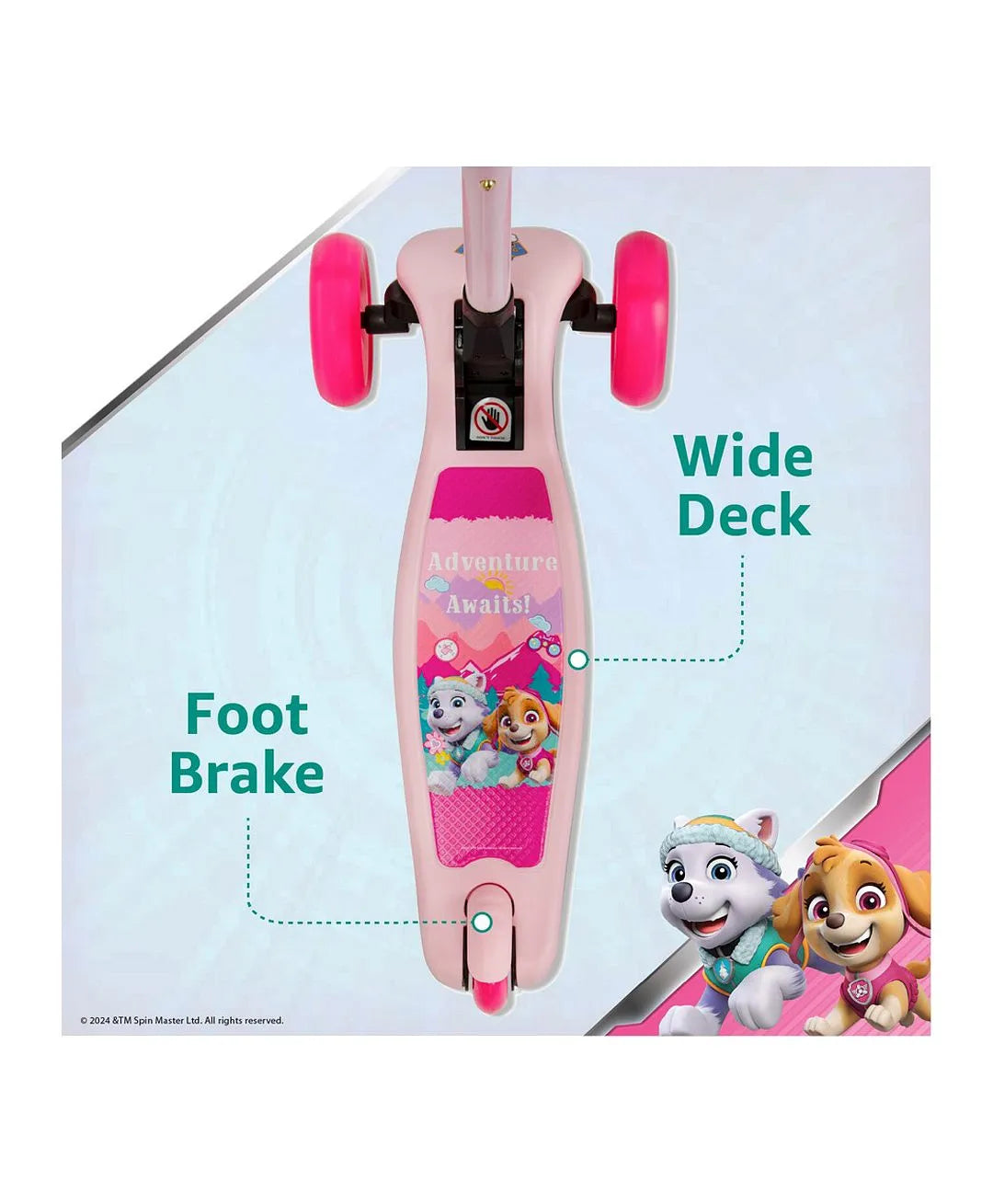 With cool kids’ designs and easy-to-ride features, this awesome scooter will excite your kids, ensuring they ditch screen time for outside physical activity every day! And, the top-notch safety measures mean less worries for parents and caregivers!Tri-color LED lights in the PU wheels sparkle as kids ride, creating awesome lighting effects! And, with multiple kid-friendly designs, your child or grandchild will hop on all the time, meaning this won’t be one of those forgotten toys in the yard.The 3-wheel scooter features Lean-to-Steer technology for smooth turning and stable balancing. As your child tilts his or her weight to the left or ride, the scooter glides into the turn. This advanced safety feature keeps kids from jerking on the handlebars, which can cause them to lose their balance and fall.