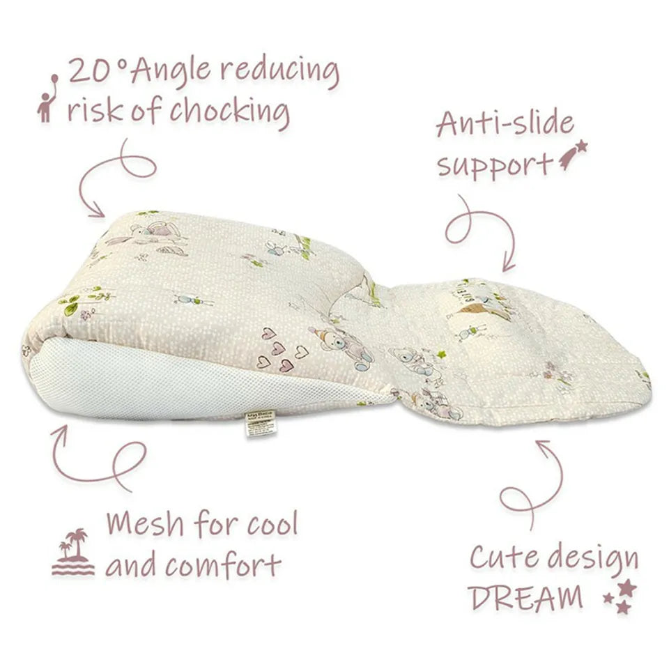 The MyBebe Baby Lounger is the perfect solution for bottle-fed babies during feeding time. Crafted with Korean precision, this lounger offers a secure and comfortable feeding experience for your baby. Safety First: the lounger is ingeniously angled at 20 degrees for backflow prevention during feeding, reducing the risk of choking and keeping your baby safe and dry. Maximum Comfort: with an anti-slide bottom support, the MyBebe Baby Lounger ensures your baby enjoys optimal comfort and support, making feeding sessions a breeze. , , Versatile and Stylish: made from soft, breathable cotton, our lounger is perfect for use at home or on-the-go. Choose from two charming designs to suit your style. Plus, cleaning is a breeze with easy-to-wash materials. Give your baby the best during feeding time. The MyBebe Baby Lounger is a must-have for parents who prioritize safety, comfort, and style.