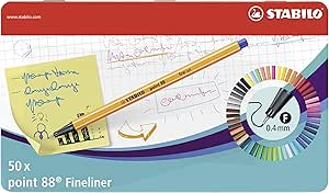 Stabilo's point 88 fineliner is available in 47 vibrant colours and has a line width of 0.4mm. The Stabilo point 88 fineliner pen is excellent for all kinds of projects - from jotting down notes, revision, mind-mapping to detailed art work. The Stabilo point 88 is the original Universal fineliner suitable for the whole family with a metal encased tip to ensure quality and prevent breakages. They fit perfectly into your pencil case and their special formula ink will not smudge or dry out due to its long cap-off time. The Stabilo point 88 and its excellent colours make it more than just a pen - it’s a favourite!