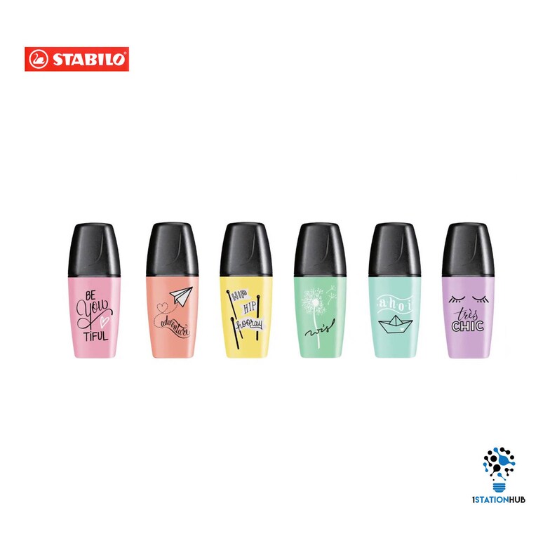 The Stabilo BOSS MINI is a mini version of the classic Stabilo BOSS ORIGINAL and has a destinctive little shape which is perfect for on the go or if you haven't got the space. The highlighter pen fits perfectly in your pencil case without using a lot of space. Plus don't worry if you forget to replace the cap, you are able to leave it off for up to 4 hours and the highlighter will regenerate once the cap is replaced. Let's go and make your work more colourful!