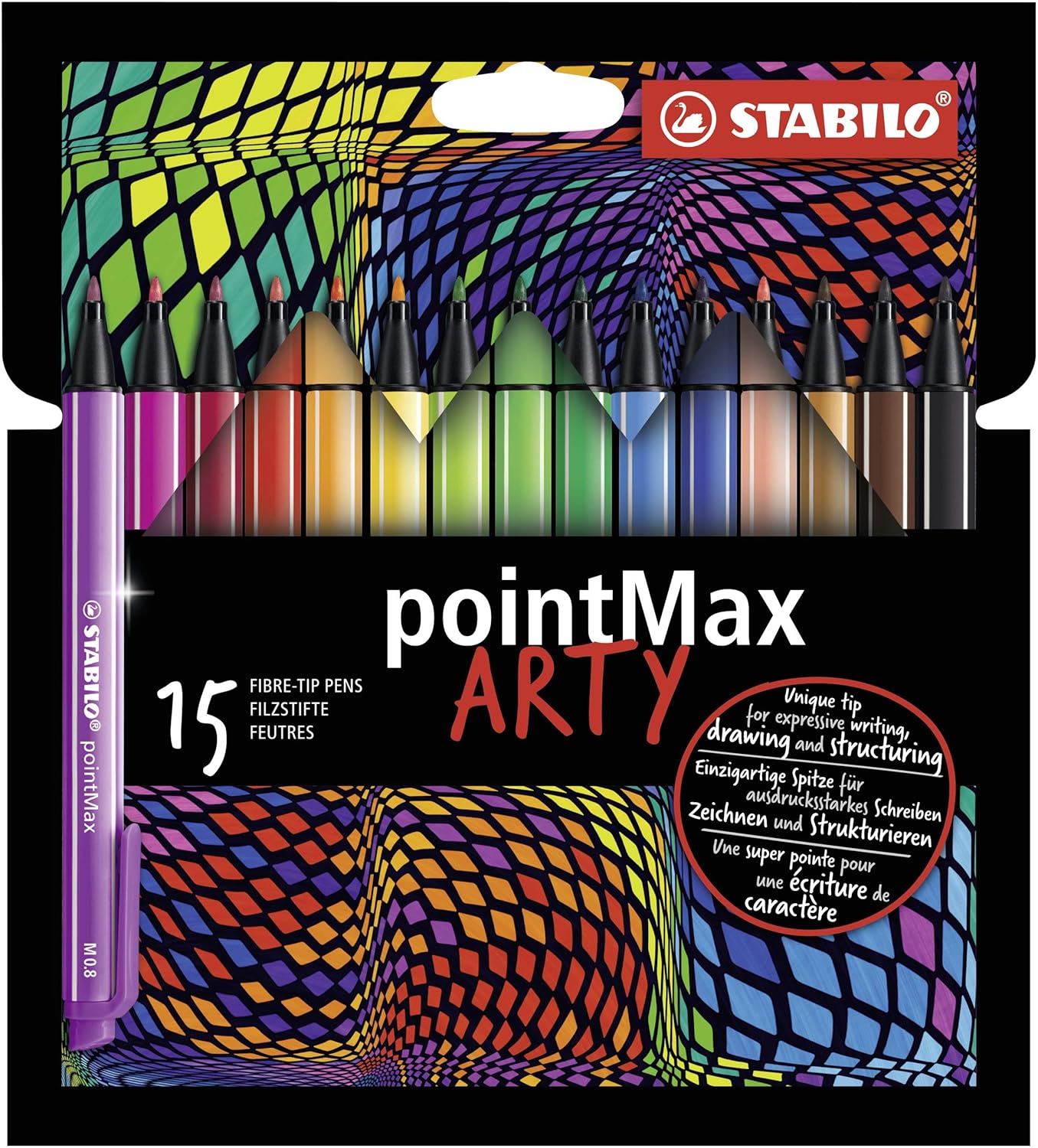 The Stabilo pointMax is a medium tipped nylon felt pen and a Must-Have for every pencil case.The strong nylon tip and the 24 different colours lets your creativity flow and it's ideal for writing or colouring. Be inspired to create wonderful mind maps, drawings or just add some colour to you notes. The pen is designed to dry quickly and not to bleed through paper - The Stabilo pointMax felt tip pen is just for you.