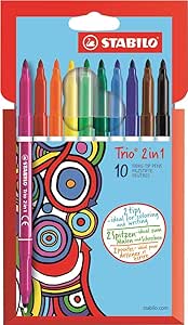 Double the tips, double the fun. Stabilo Trio 2-in-1 felt pen one end and fineliner tip the other end. For everyone who loves to colour, draw and write in the same shades of ink. Both ends also have a triangular grip zone that promotes the correct grip to reduce fatigue whilst being creative. Yet another product from STABILO's Trio colouring range.