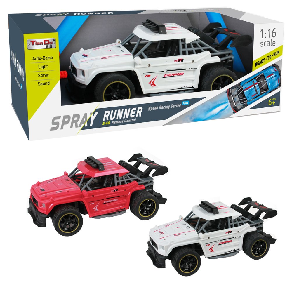 Indulge in high-speed remote-controlled action with our 1:16 scale RC Mercedes-Benz Big G, featuring a spray function and an included rechargeable battery. This striking vehicle offers a realistic and exhilarating racing experience, maneuverer through a 2.4G remote control system for precise handling and responsive manoeuvrability. The incorporated spray function adds an extra layer of excitement, allowing users to leave a trail of action as they race.