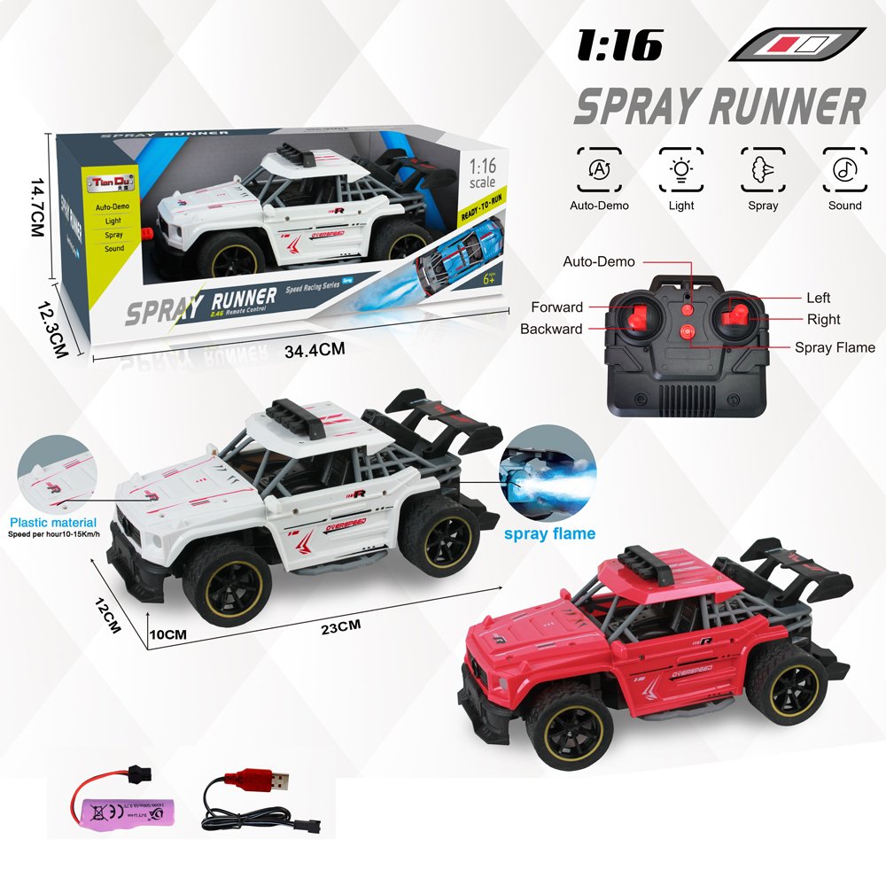 - Spray Function: Unique feature adds excitement as the car leaves a trail of action during play.