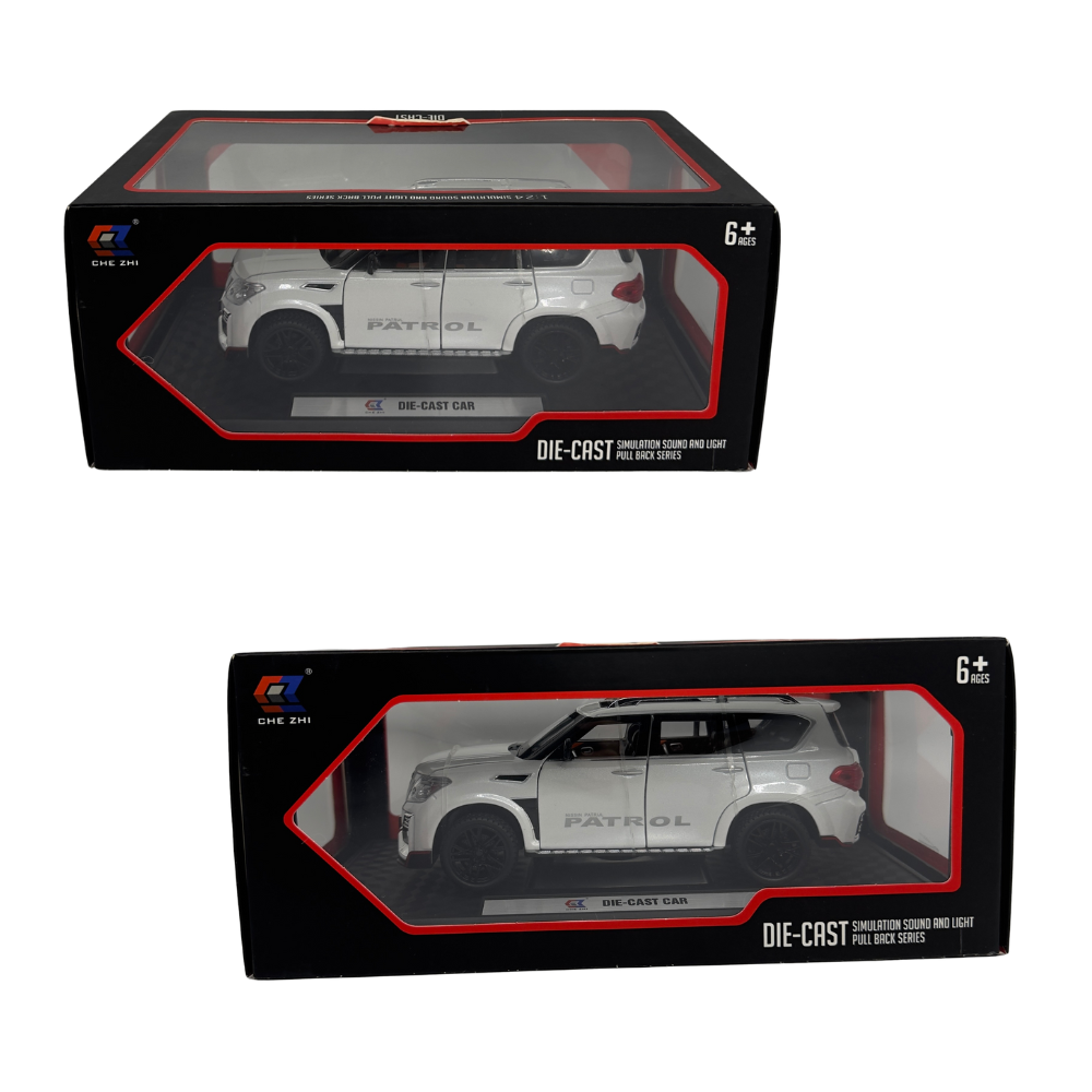 - Function: Press the two wheels of the front car to trigger the engine sound and lights, and open the door to trigger the lights of the front and rear lights. Place the car on the ground, hold down the car body and pull it back, the car will drive forward. (With pull back function)