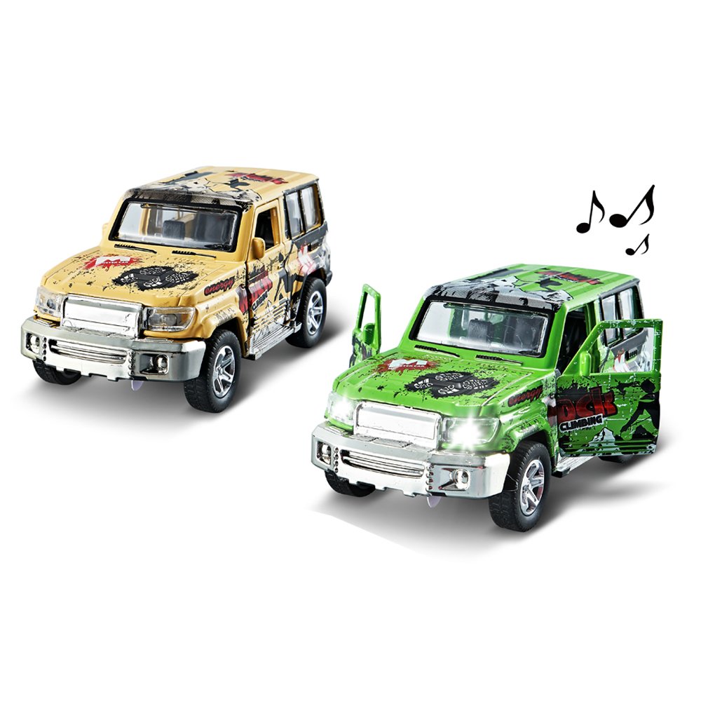 Experience the thrill of the open road with our 1:32 Graffiti Toyota Jeep Alloy Return Door Opener, complete with dazzling light and music features. This miniature hybrid Jeep replica is designed for adventure seekers of all ages, providing hours of playtime fun with its realistic design and exciting functions.
