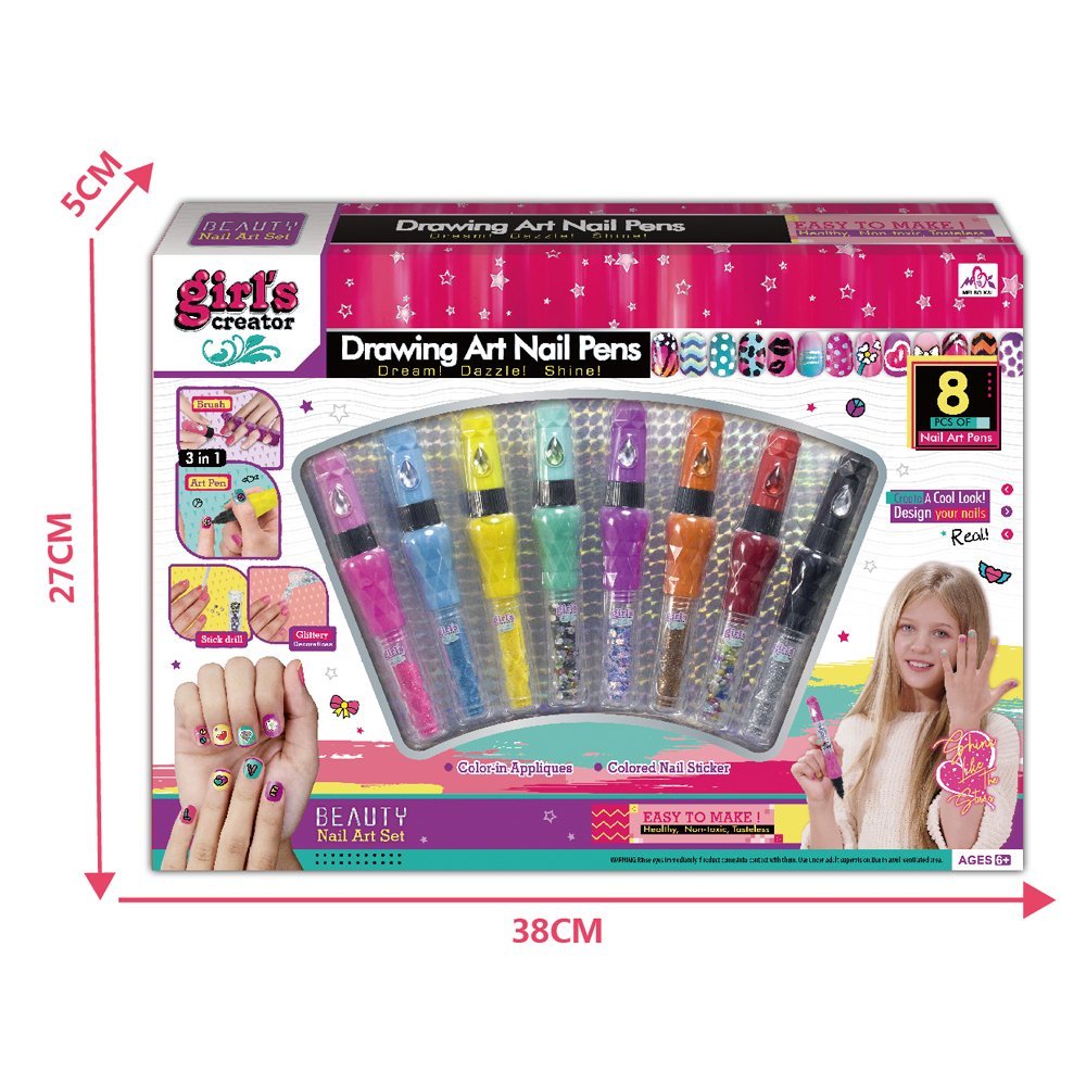 Unleash your child's creativity with the 3-in-1 Drawing Art Nail Pens! This exciting set includes 8 vibrant, non-toxic nail art pens designed for kids aged 6 and up, making it easy and fun to create stunning nail designs.