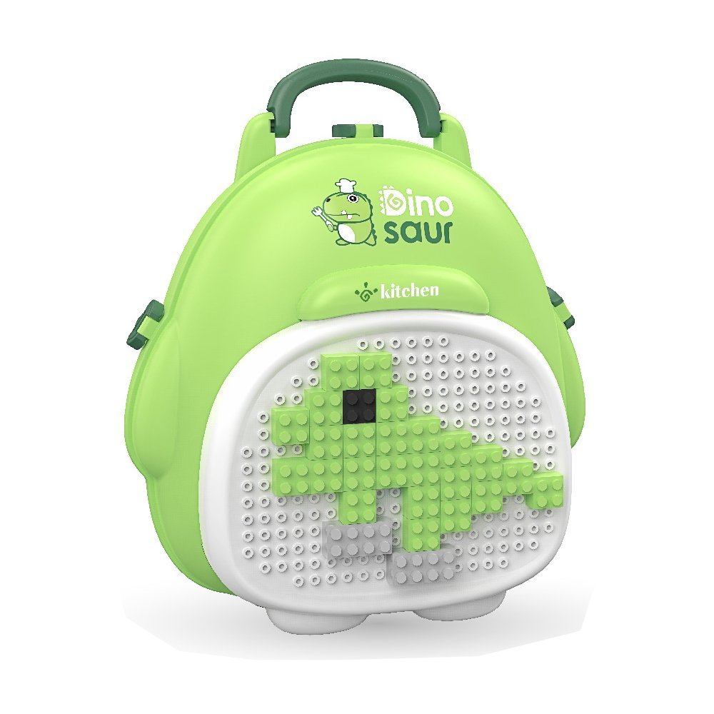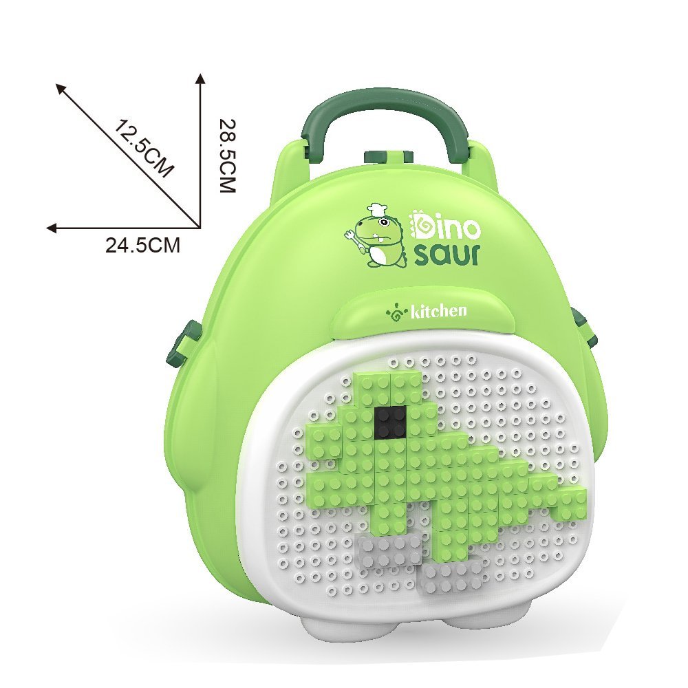 - 3-in-1 Functionality: Combines a DIY block set, a practical backpack, and a dinosaur-themed kitchen playset.