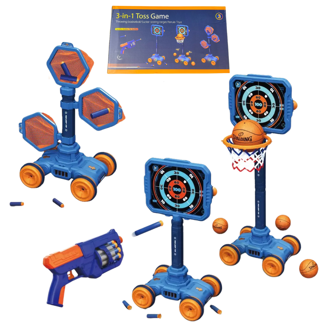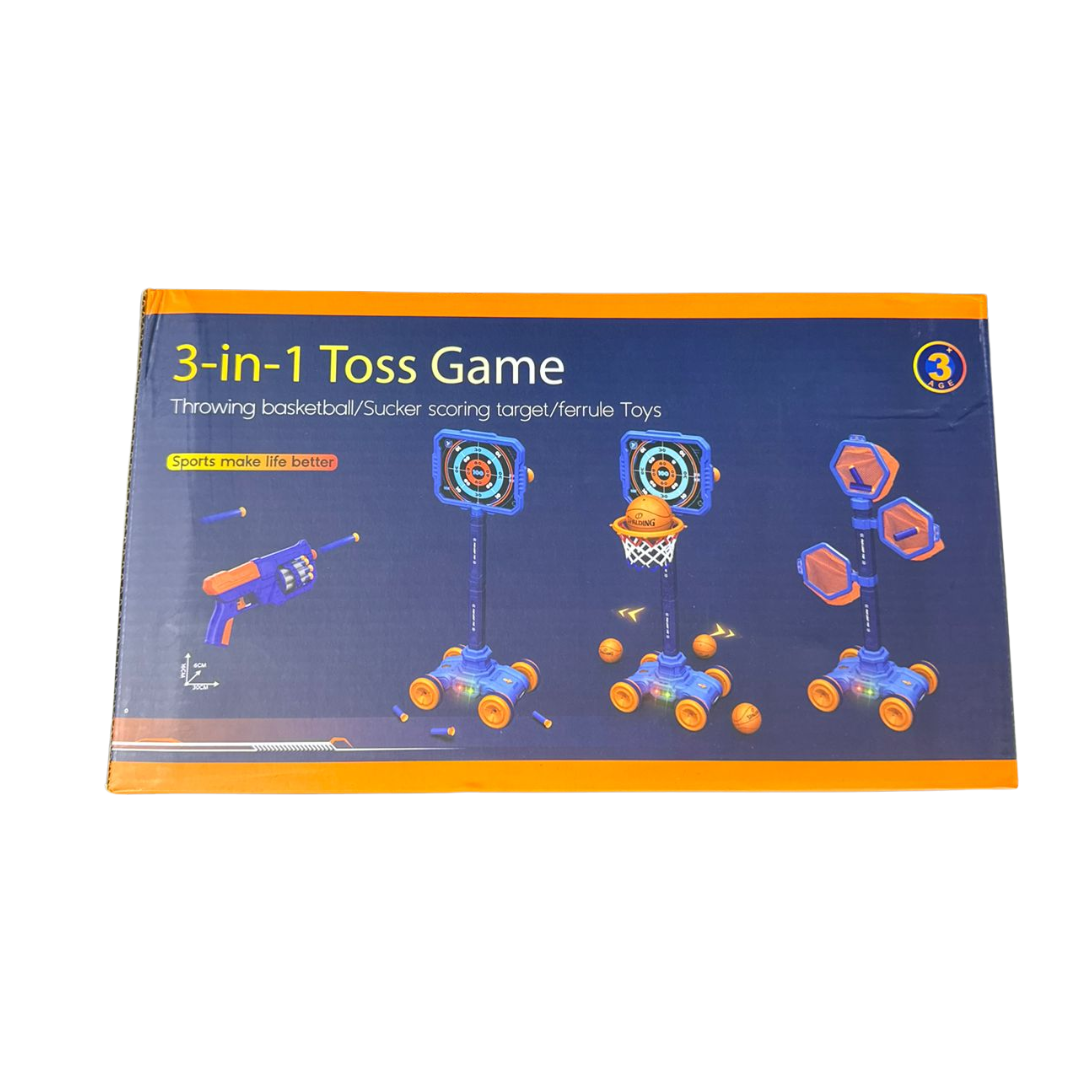 The 3-in-1 Toss Game brings triple the fun with three exciting games in one! Perfect for kids who love variety, this versatile set includes a bean bag toss, ring toss, and target toss, providing endless entertainment while helping kids develop coordination, accuracy, and competitive spirit. Whether playing indoors or outdoors, this game is designed to keep children active and engaged. Bright and Colorful Design: The colorful targets and accessories are designed to catch kids' attention, making the game visually appealing and fun for all ages. Easy Setup: Quick and simple to assemble, so kids can get right to the action without any hassle. Ideal for All Ages: Suitable for kids 6 and up, making it a great family activity or a fun game for kids' parties and gatherings.