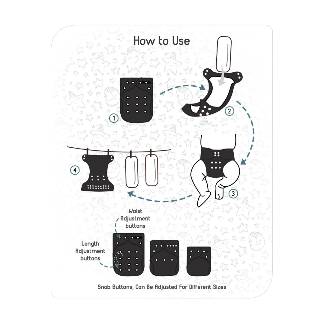 - Adjustable Snap Lock Design: With easy-to-use snap locks, this diaper adjusts to your baby's size as they grow, offering a secure, custom fit from infant to potty training.