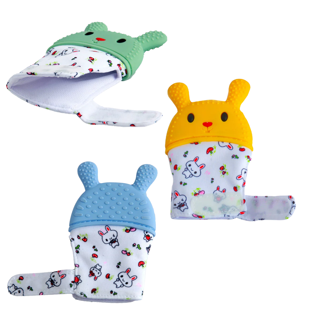 Ease Your Baby’s Teething Discomfort With This Soft And Colorful Teething Mitten. It Features A Playful Rabbit And Carrot Design And Fits Comfortably On Either Hand. Made From Food Grade Silicone, It's Perfect For Little Ones Who Can’t Yet Hold Teethers.