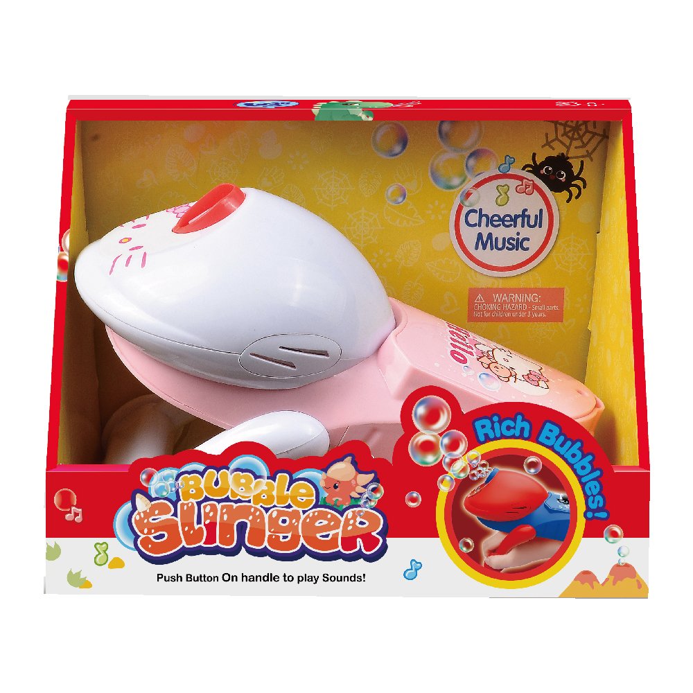 Experience endless bubble-blasting fun with the Bubble Slinger! This innovative bubble blower features a push-button on the handle that activates cheerful music while blowing rich bubbles. Simply load the bubble solution, press the button, and watch as a stream of bubbles fills the air. Perfect for outdoor play, parties, and joyful moments with family and friends!