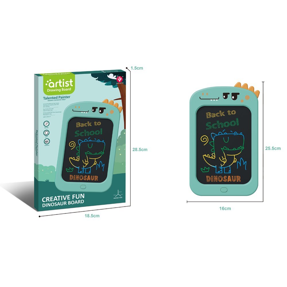 Let your little one become a talented artist with the Creative Fun Dinosaur Board! This fun and colourful LCD writing tablet, designed for children aged 3+, features a friendly dinosaur shape that adds a touch of adventure to their creative journey. The flexible and smooth LCD colour screen offers a delightful drawing experience with vibrant, clear lines that pop with colour. With its one-click erase function and a handy screen lock feature, kids can create, erase, and save their masterpieces with ease. Portable, eco-friendly, and easy to use, this tablet is perfect for drawing, writing, and doodling anywhere!