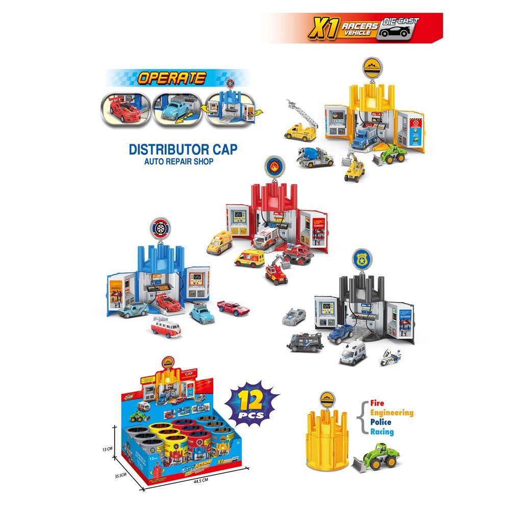 The Racers Vehicle Die Cast Distributor Cap Auto Repair Shop is a set that brings the excitement and realism of a functioning auto repair shop right into the hands of young car enthusiasts. This die-cast vehicle set is designed to stimulate creativity and enhance fine motor skills through imaginative play.