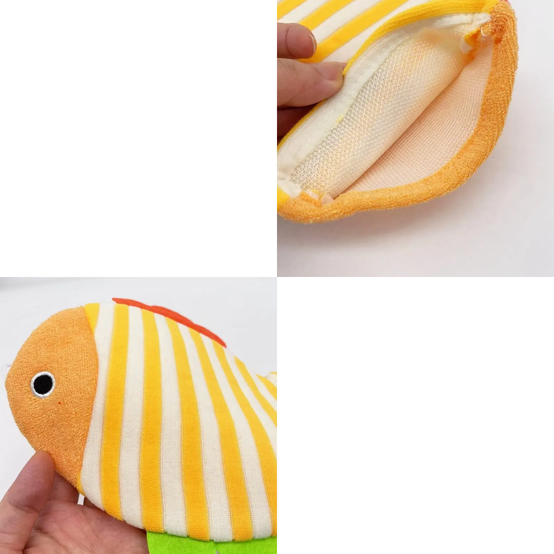 Designed in a playful fish shape, these gloves make bath time more fun and engaging for your baby. The built-in net layer helps you create a rich lather quickly and ensures easy, mess-free cleaning.