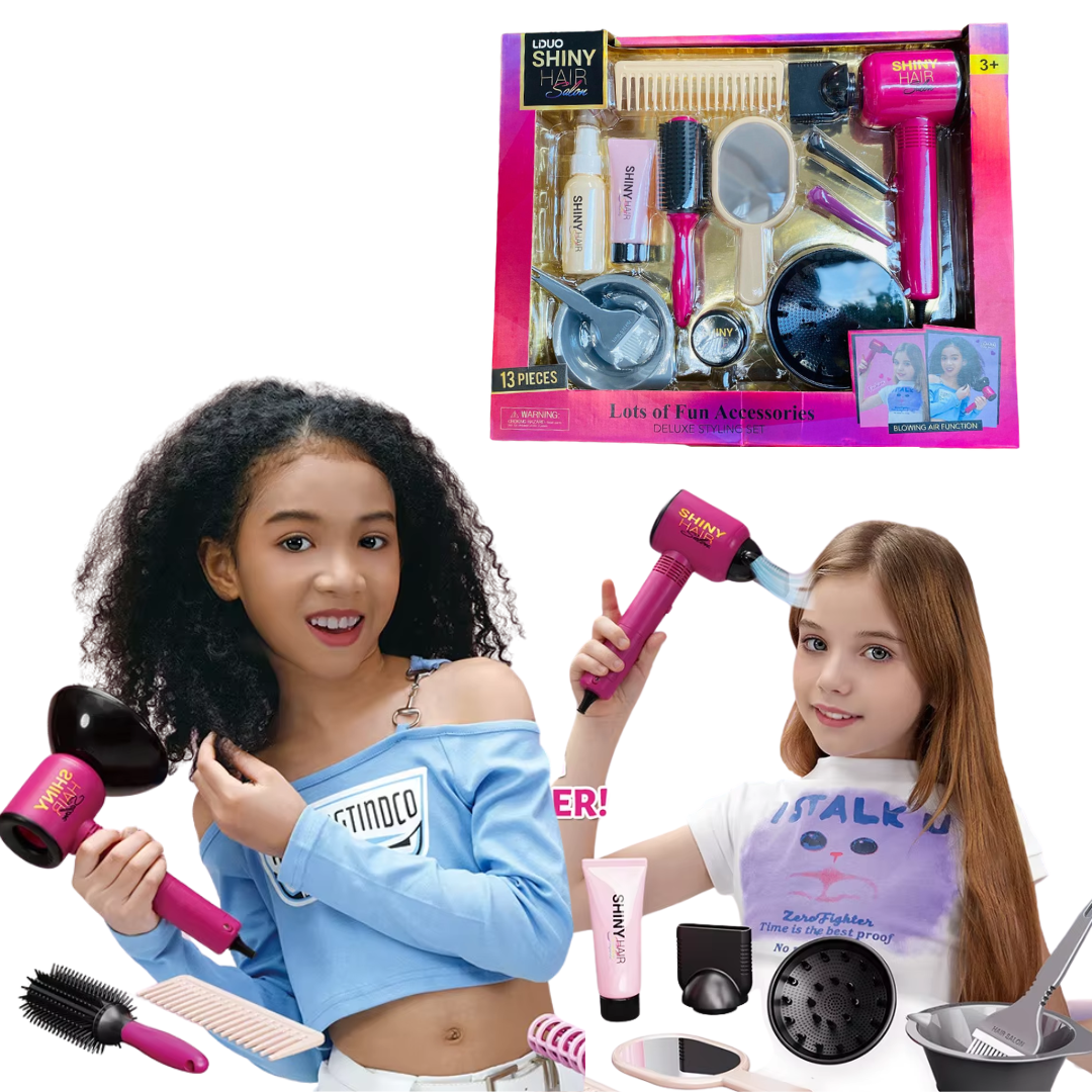 Does your little one love watching you get ready and dream of styling hair just like a pro? The 13-Piece Hairdresser Set is the perfect way to let your child step into the role of a real stylist! With realistic tools and a functional hairdryer, this set offers everything needed to spark imagination and set up a pretend beauty salon right at home.