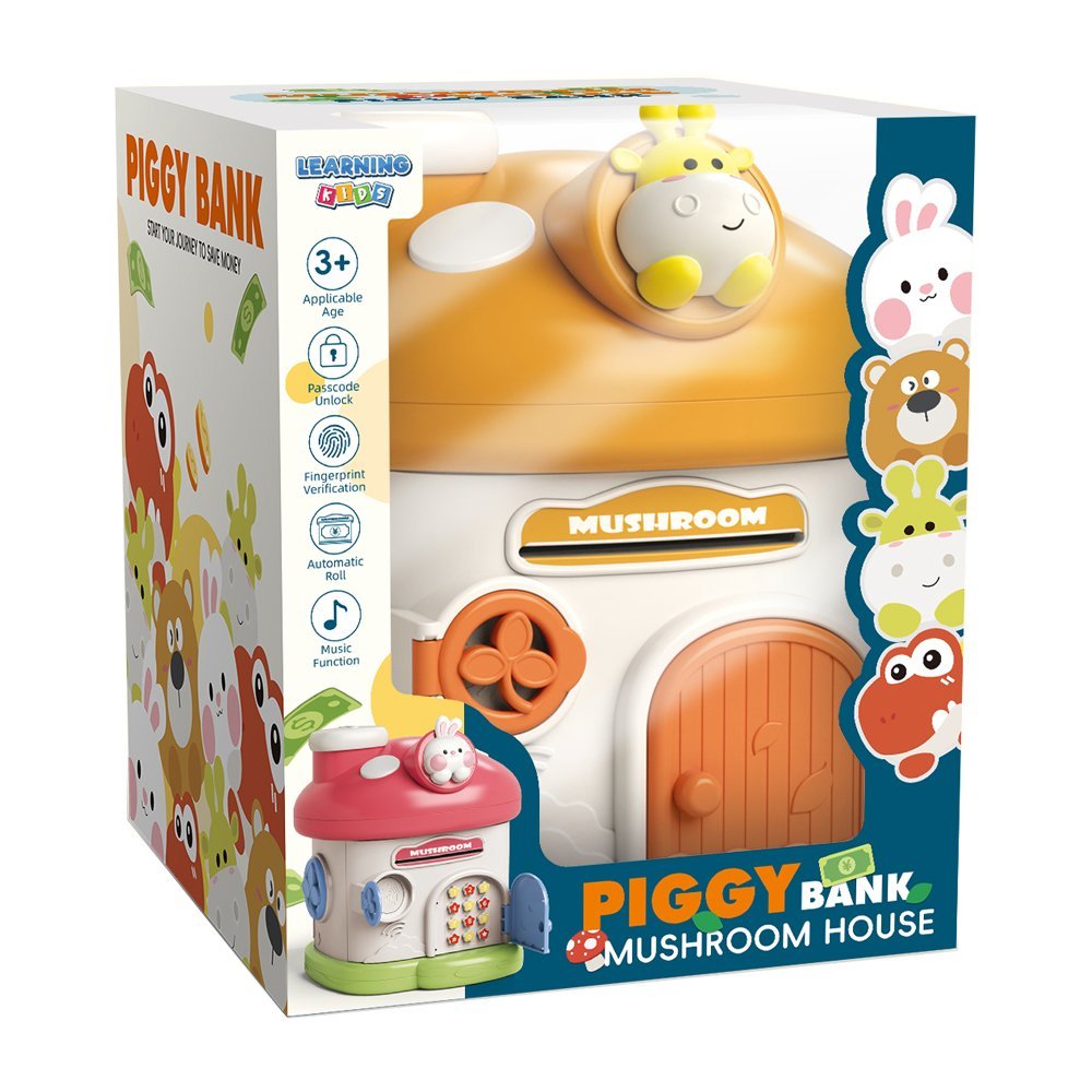 The Giraffe Mushroom House Piggy Bank is a delightful and interactive money-saving tool designed for children. Shaped like a charming mushroom house with a giraffe motif, this piggy bank features a built-in password and fingerprint unlock system, adding an extra layer of security and fun. With its automatic money roll function and musical features, saving money becomes an enjoyable experience for kids.