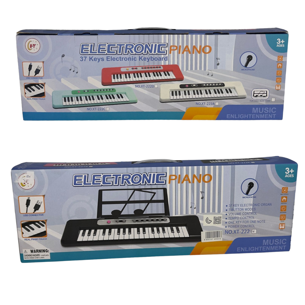Introduce your child to the world of music with the Electronic Keyboard Piano! Featuring 37 keys, 7 unique modes, and a built-in microphone, this beginner-friendly keyboard is perfect for young musicians to explore different sounds and rhythms while having fun.