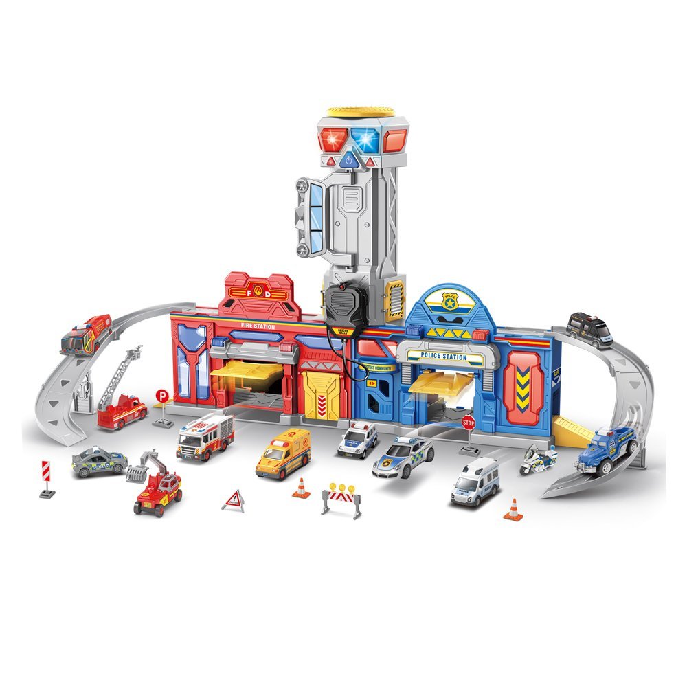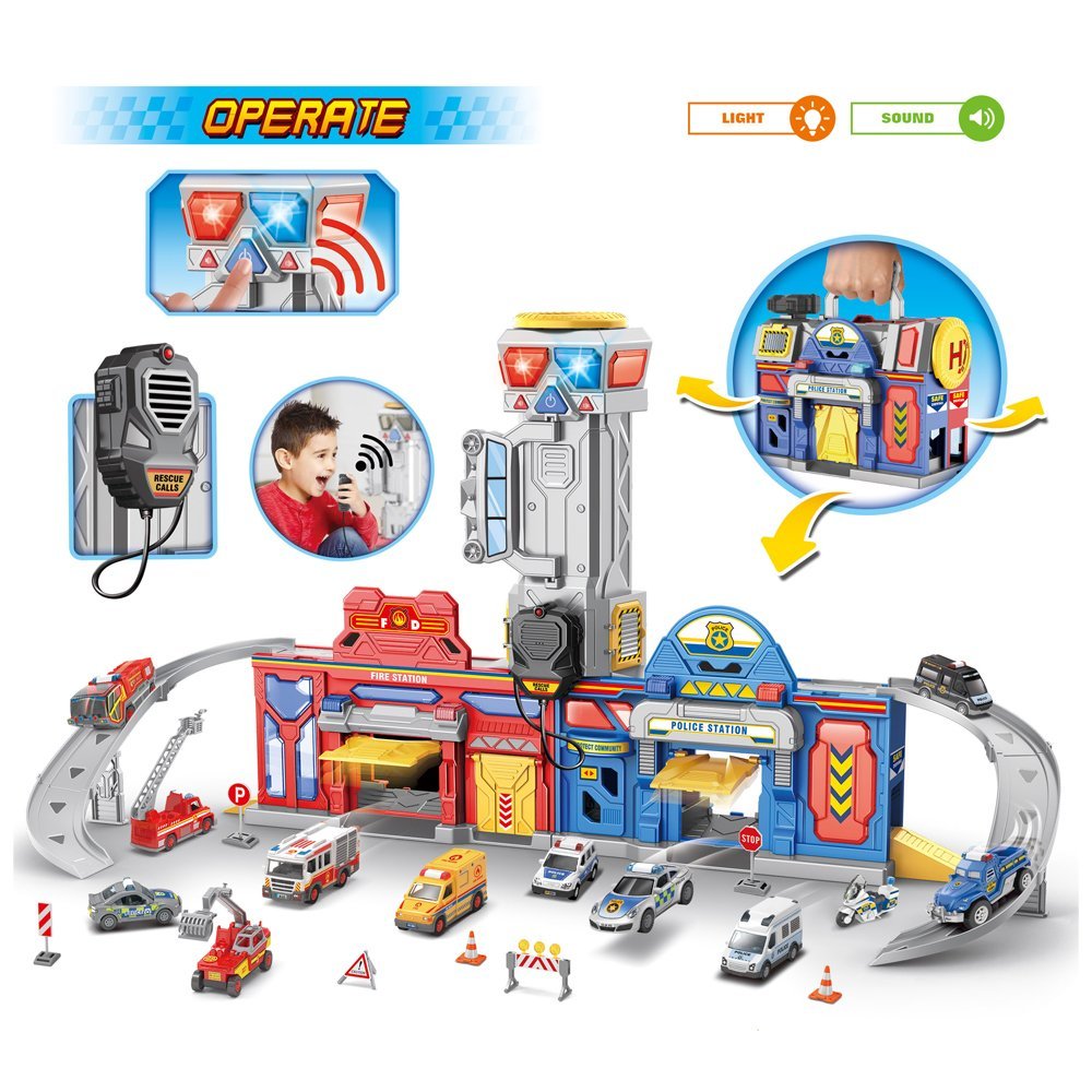 - 2-in-1 Fire Station & Police Station: A versatile playset for dynamic emergency scenarios.