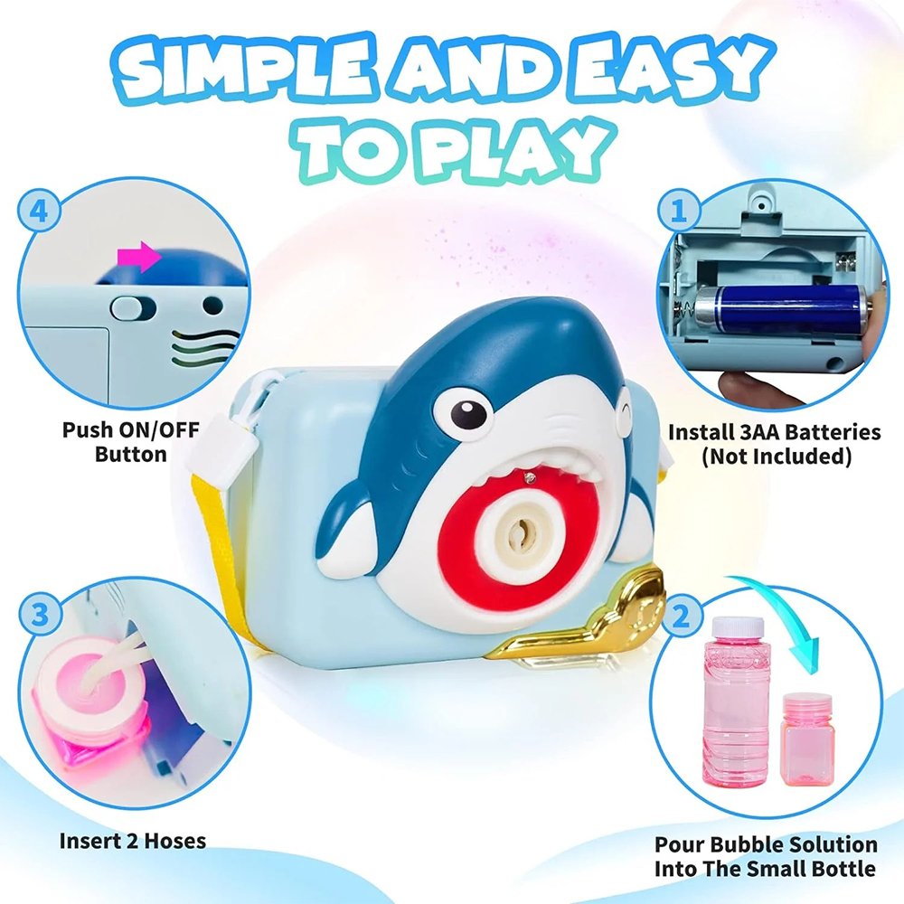 Stem Shark Bubble Blowing Children's Camera - Electric Music and Lights Toy for Kids 3+