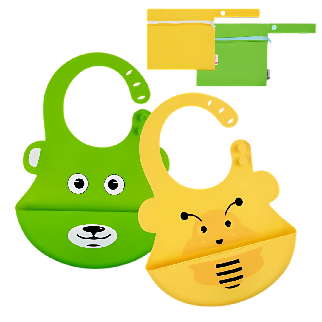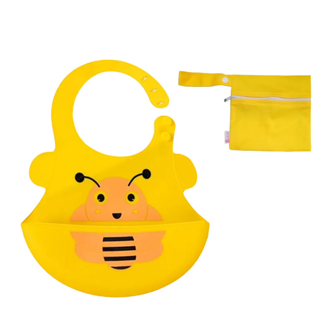 Silicone Bib and Bag: Easy Feeding and Cleanup for Babies Make mealtime mess-free and stress-free with the Silicone Bib and Bag set. Designed for comfort and convenience, this set ensures your little one stays clean while providing an easy way to store and transport snacks or bibs on the go.