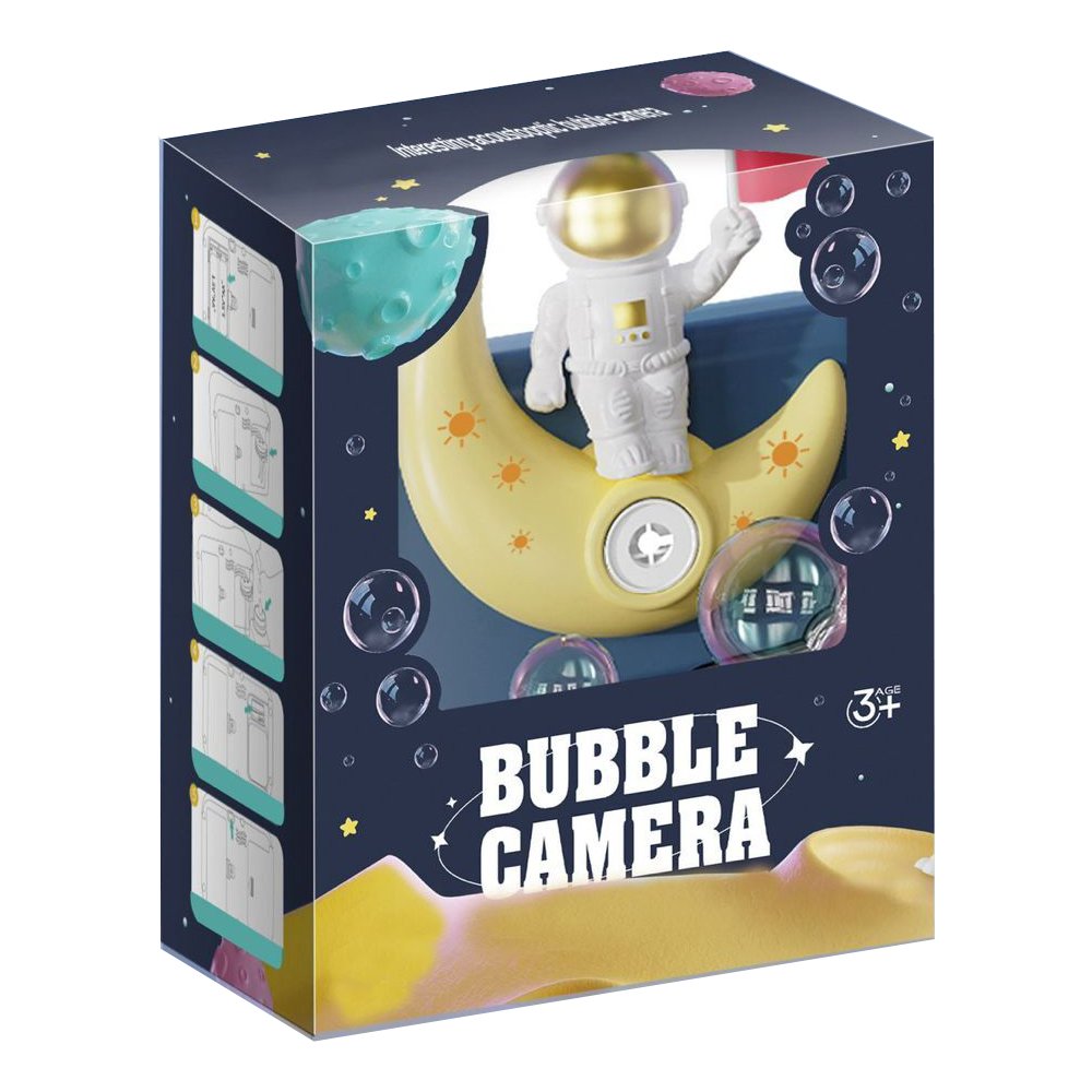 Embark on an intergalactic adventure with our Space Bubble Blowing Children's Camera. Shaped like a camera and featuring captivating space-themed designs, this toy combines the joy of creating bubbles with the appeal of a camera toy. Tailored for children aged 3 and above, it emits mesmerizing music and colorful lights, offering an immersive sensory experience while encouraging imaginative and playful interactions.