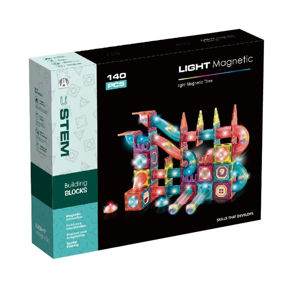 This 140-piece set of Track Ball Magnetic Building Blocks provides an expansive and imaginative play experience. The magnetic blocks, measuring 7.5CM, allow children to easily construct elaborate track ball systems. With the added lighting feature, the structures come to life, creating a vibrant and engaging play environment that stimulates creativity and learning.
