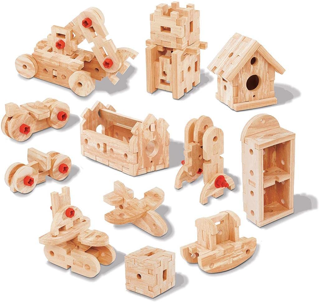 • Unique realistic-looking “wood” is made from Durafoam that assembles easily and allows children to build creations with unlimited imagination. Includes 65-piece accessory set. Requires two “AA” batteries (not included). Made in USA. Minimum Adult Assembly Required.