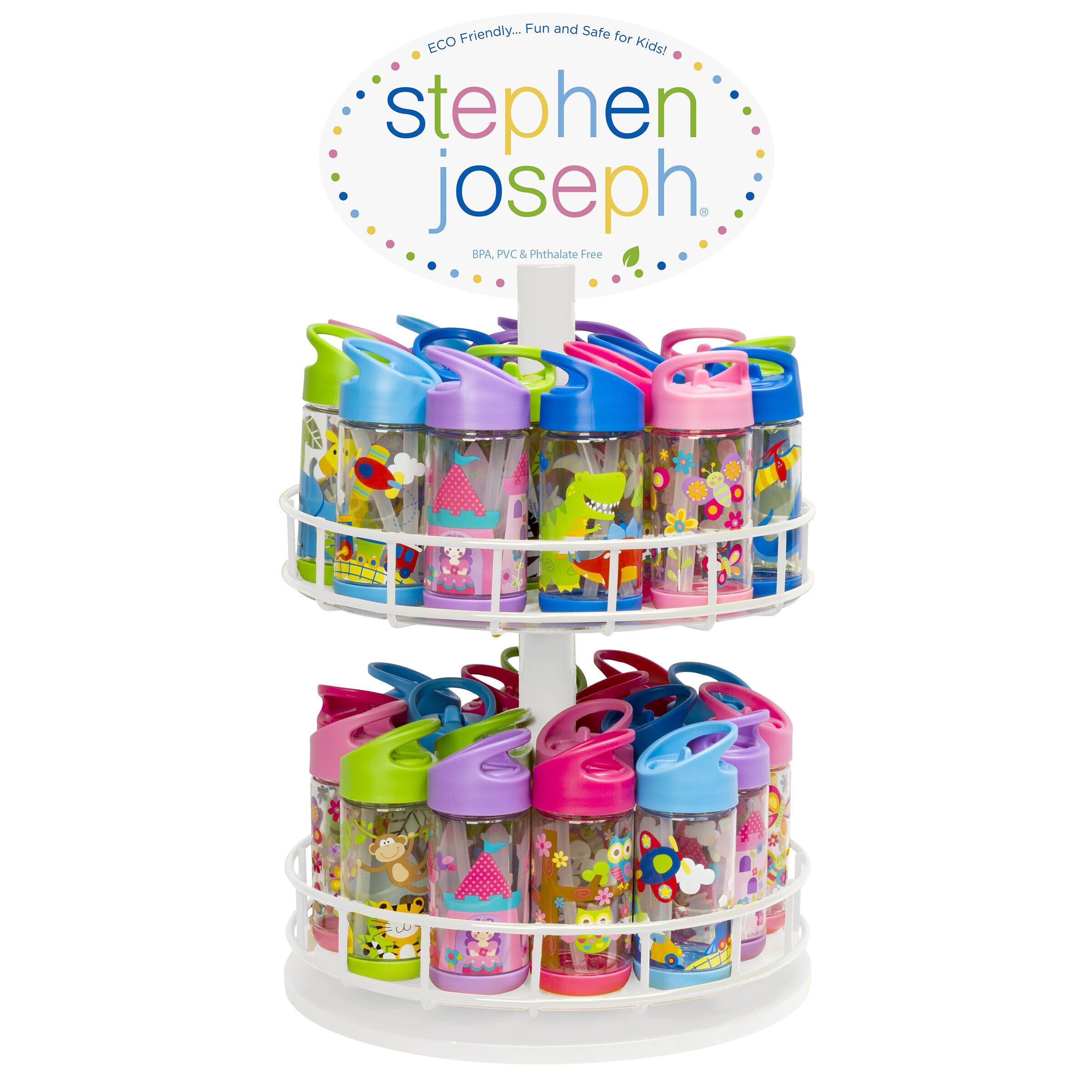 Kids and parents will “flip out” over Stephen Joseph Flip Top Bottles. Right sized for little hands with an easy to use flip top spout, this bottle is perfect for the transition away from sippy cups, but can also be used as an everyday bottle for school and play. Fits in all mesh side pockets on any Stephen Joseph backpacks, luggage and bags. Don’t have a side pocket or bottle holder? No problem, the lid is designed so that it can be easily attached to bags, strollers, or belt loops with a clip or carabineer. Body, lid and straw come apart for easy wash and cleaning.