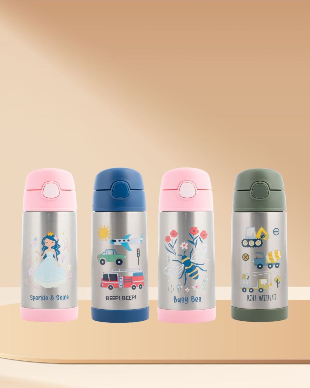 Finally, an affordable and adorable double walled bottle to keep your kiddos hydrated with warm hot coco or cool lemonade! We designed these bottles to hold enough of your kiddos favorite beverage without wearing out their little hands. Free of all the bad stuff like BPA, phthalates and PVC but full of all the good stuff, like leak proof lid with an easy open button, and sturdy stainless steel construction with ultra safe PP plastic details. If it could get any better, this bottle is top rack dishwasher safe and coordinated back with the rest of the Stephen Joseph back to school collection! How dreamy is that?! We know... the dreamiest!