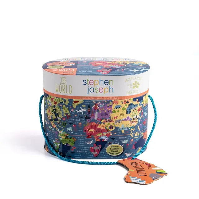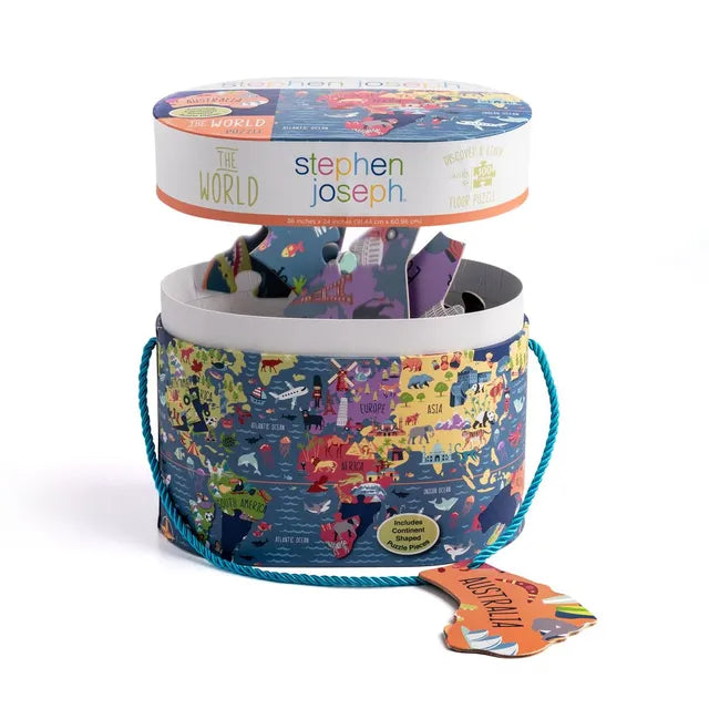 Take playtime to global heights with the Stephen Joseph Floor Puzzle - World. This vibrant, oversized puzzle fosters creativity, fine motor skills, and problem-solving through bright, engaging artwork. Comes in a decorative, gift-ready box that also serves as charming shelf décor. Ideal for solo play or bonding with friends and family.
