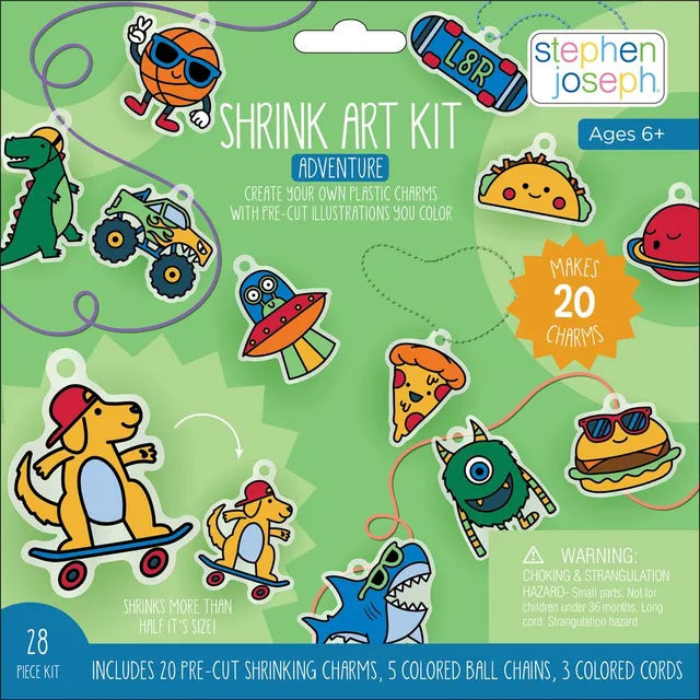 Level up your kid's playtime with this exciting adventure-themed shrink art kit. So easy to make! Just color, bake, decorate and voila! - Your little ones will have a one-of-a-kind charms and accessories to wear, share and show off