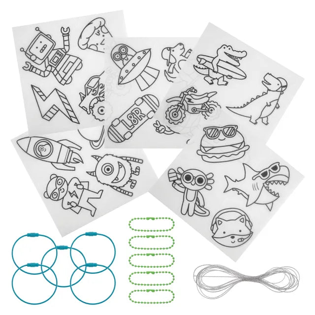 - Includes 20 pre-cut shrinking charms, 5 colored ball chains, 3 colored cords.