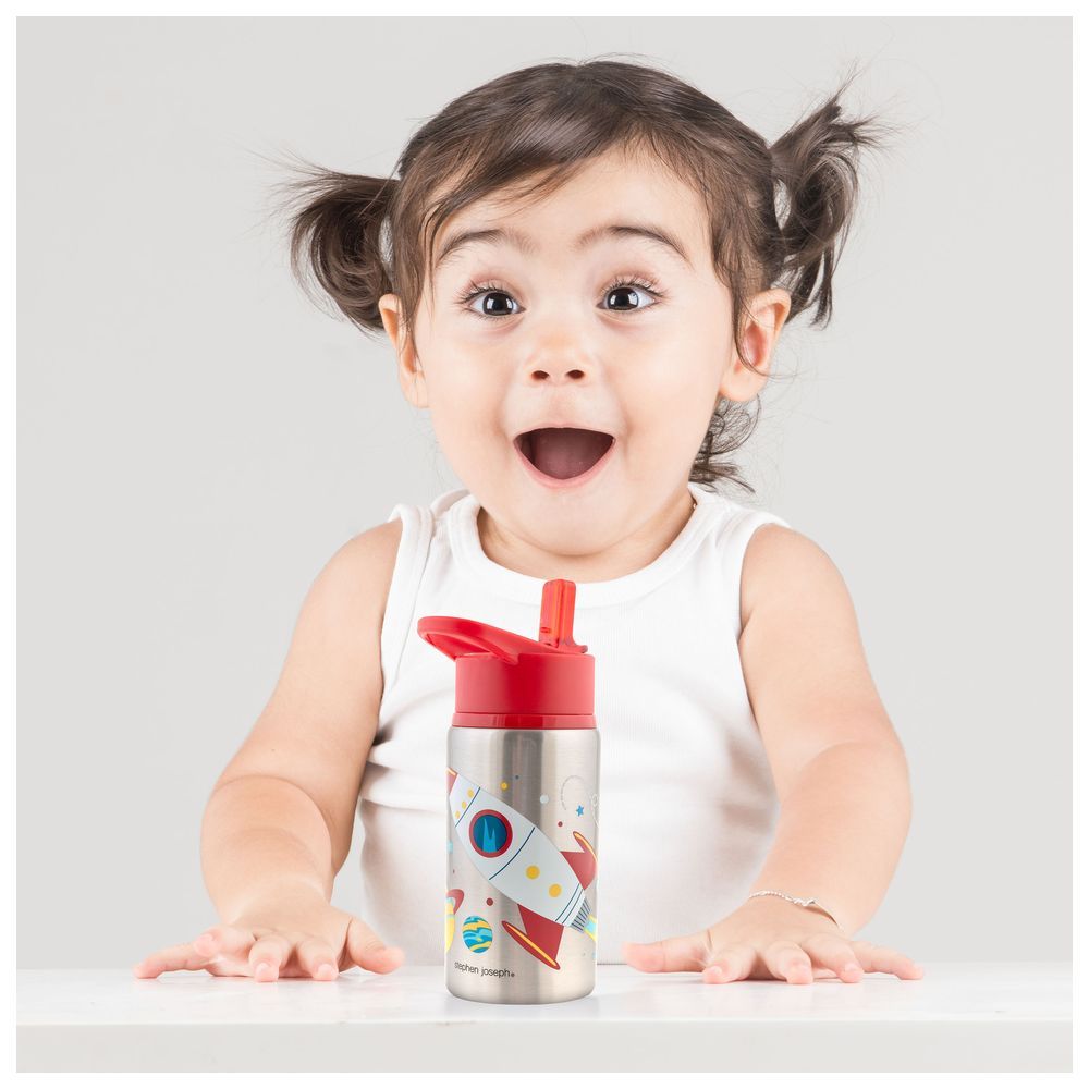 Our Stainless Steel Water Bottles hold up to 18 ounces of liquid, feature a flip top spout to prevent leaks when closed and include an easy-to-hold carrying loop. EASE OF RE-USE: Top rack dishwasher safe, our stainless steel bottle is easy to keep clean! Each bottle comes with a second straw for maximum re-use. MATERIALS YOU CAN TRUST: BPA, Phthalate and PVC free Stainless Steel Water Bottles. PAIR IT UP: Add our Snack Box with Ice Pack, Lunch Pal or Classic Lunchbox for a perfect lunch set.