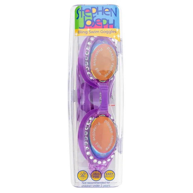 - Purple swim goggles with 44 rhinestones for a glittery poolside look.