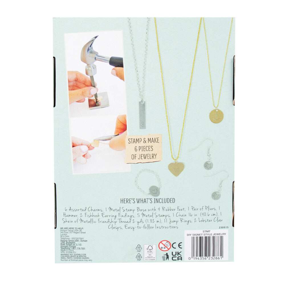Unleash your inner artist with Stmt - Kids D.I.Y Signet Style Jewelry! This exciting craft kit lets you discover the art of jewelry-making, creating stunning bracelets, necklaces, and more. Choose from 5 trendy designs ƒ?? an anchor, butterfly, star, heart, or infinity symbol ƒ?? to stamp onto high-quality charms and pendants. With endless combinations of beads, tassels, and charms, the possibilities are truly limitless. Easy-to-follow instructions guide you through basic jewelry-making techniques, making it perfect for both beginners and experienced crafters. Get creative and express your unique style with Stmt - Kids D.I.Y Signet Style Jewelry!