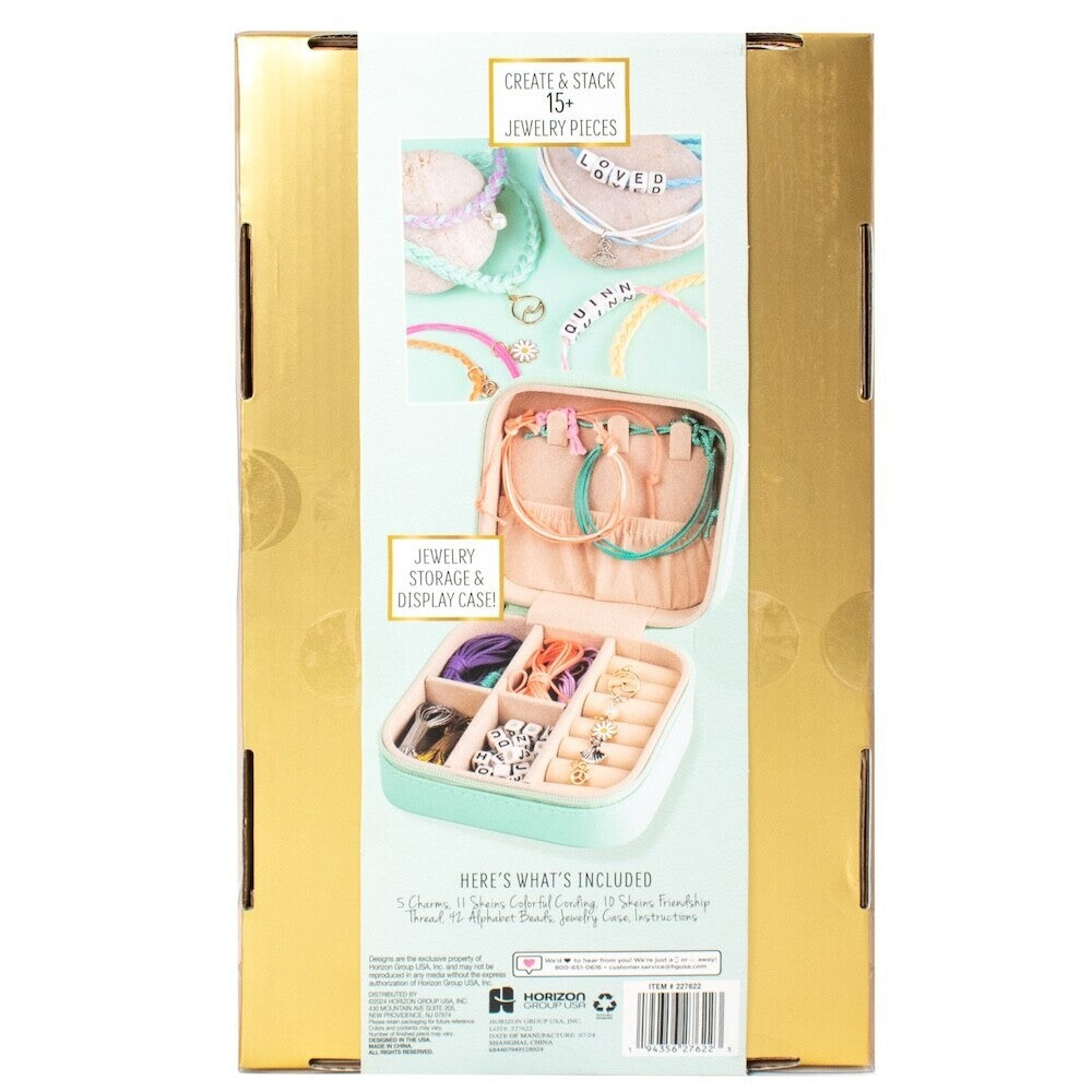 Includes assorted alphabet beads, friendship thread, knotting cord, charms, storage & display case, and a project guide.