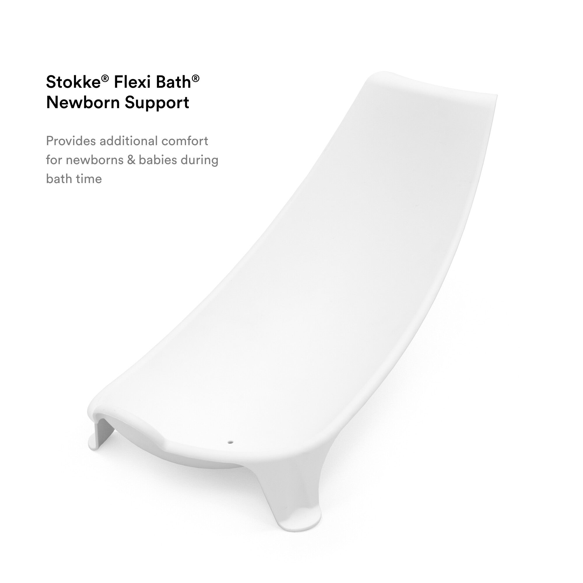 Stokke Flexi Bath Newborn Support is designed to fit the baby's natural body shape. Mimicking the support of a steady arm, the ergonomic shape ensures comfort and safety. To be used with Stokke Flexi Bath, a foldable baby bath suitable from birth to four years.