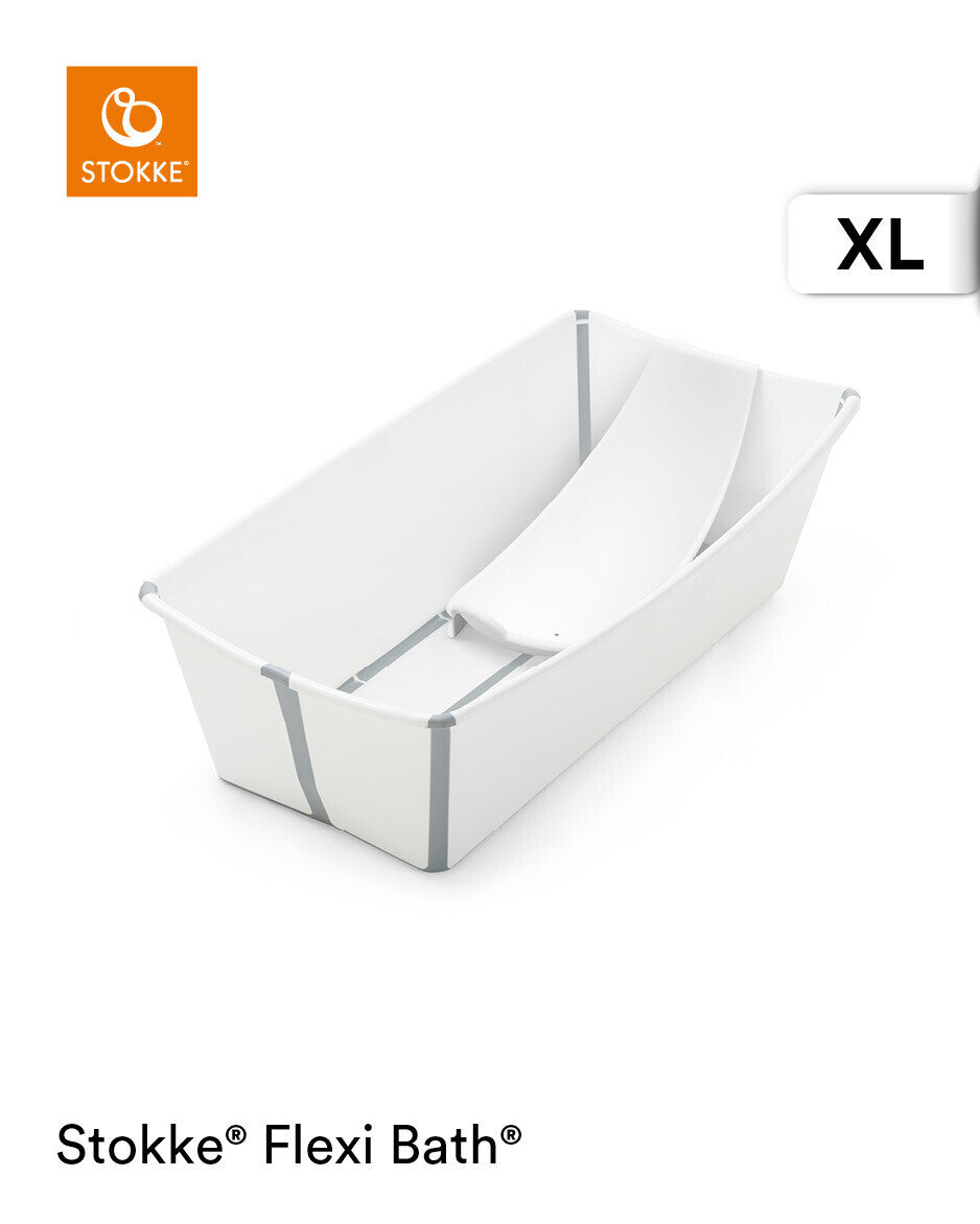 More bath time fun for growing babies and sharing , Wide and spacious, Stokke Flexi Bath X-Large is a bath tub that grows with your little one. Suitable for growing babies and young children until about age 6, it has all of the great features of our original version only with more room. The unique foldable design makes it easy to fold flat for storage or travel. Though it is generous enough for sibling to comfortably share bath time moments, rest assured, it still fits most bath tubs and showers. Great for indoor or outdoor use, this strong and sturdy bath tub is perfect for older toddlers who love to splash and play. For added safety and convenience, it includes a non-slip base and heat sensitive plug for easy draining.
