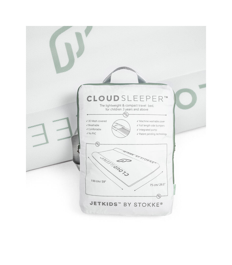 The Cloud Sleeper is the all-in-one inflatable travel bed for toddlers and children three years and above. It's a travel bed made easy that's small enough to fit inside your backpack or hand luggage. Lightweight and all-inclusive, it has no loose parts.