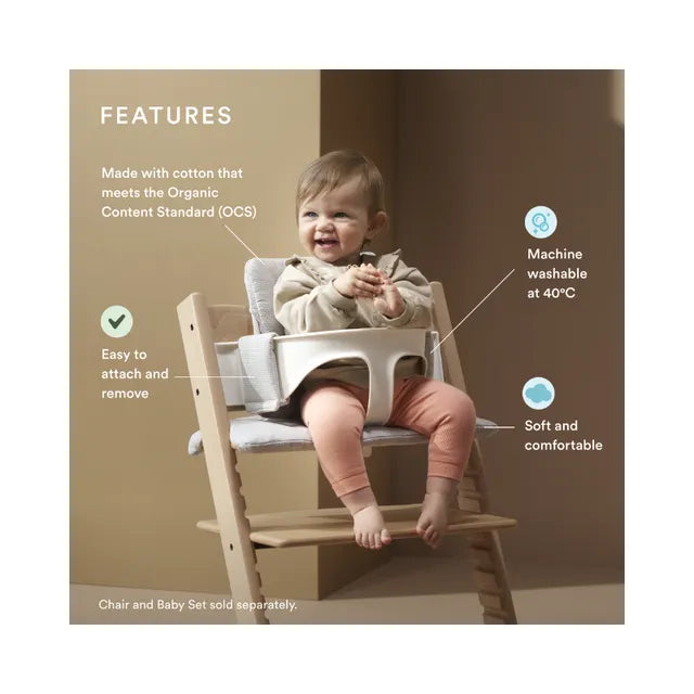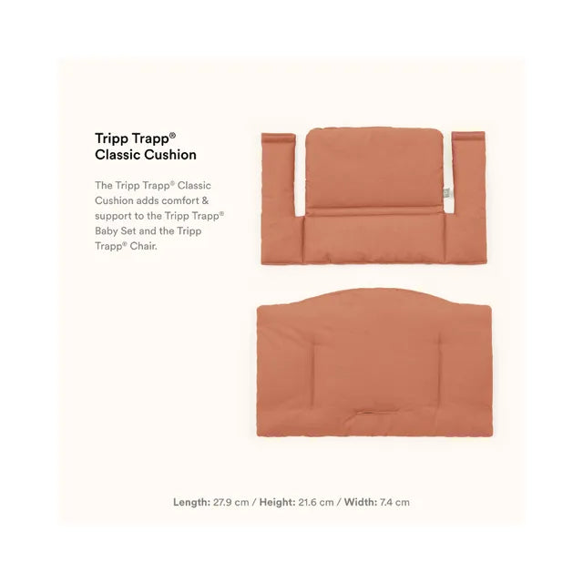 Versatile and functional, the Tripp Trapp Cushion adds both softness and personality. Available in a wide range of colours and patterns, selected designs are offered in a coated version for easy wipe. Best of all, it is compatible with all Tripp Trapp chairs with or without the Tripp Trapp Baby Set.