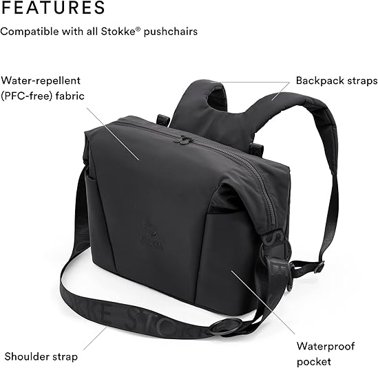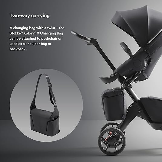 A changing bag with a twist – the Stokke® Xplory® X Changing Bag can be attached to stroller or used as a shoulder bag or backpack. Various sized pockets including a waterproof side pocket for added conveniences. The extra-soft fabrics are UPF 50+ and PFC-free water repellent and easy to wipe clean. Best of all, main textiles are made from 100% recycled PET