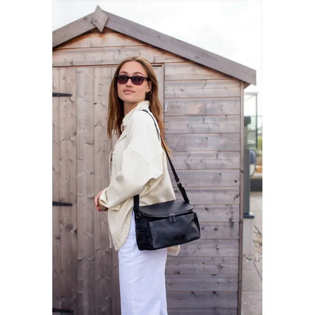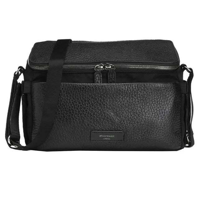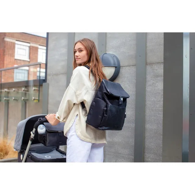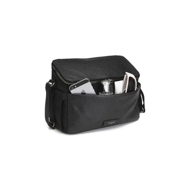 The bag all second time parents wish they'd bought the first time round. Crafted from responsibly sourced leather and durable nylon, the thoughtfully designed wide main opening gives you easy access to the spacious interior while the external zipped pocket is perfect for storing valuables. Keep drinks upright with the built-in insulated sleeve or external side pockets and easily attach to your pram with our patented stroller straps built-in to to the crossbody strap. This 2-in-1 stroller organiser and compact changing bag simply has it all.
