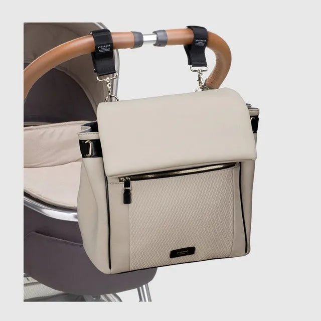 Clean lines and technical scuba combine to make the St James the most desirable convertible changing bag to date. Sports luxe styling does not compromise versatility the interchangeable silhouette means you can convert from backpack to shoulder bag seamlessly.