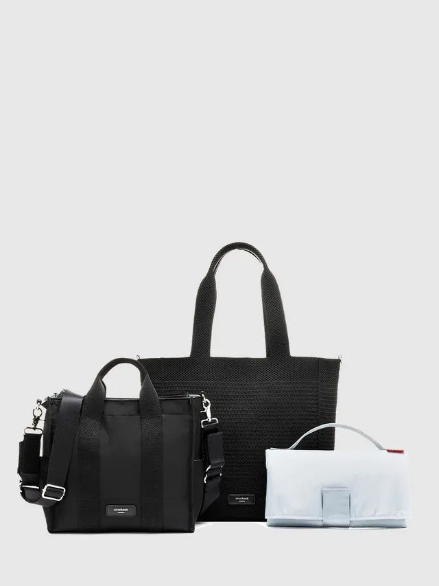 This effortlessly stylish and functional combination come together to make the perfect option for parents craving versatility. What's included: Thea knitted tote, Compact change bag/ organiser, Long strap with built-in stroller attachment, Changing mat with luxurious padding & pocket storage.